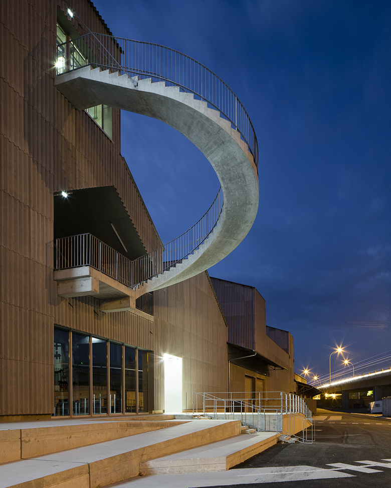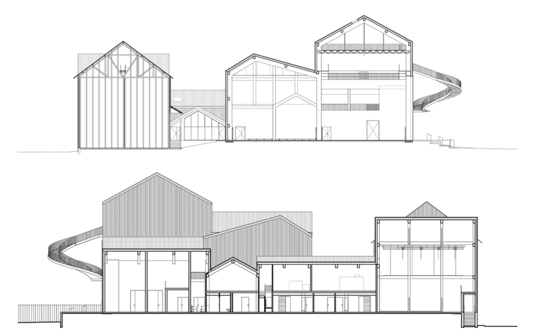 The project consists of extending the CNAC onto the fallow farmland of the La Marnaise Agricultural Cooperative site (roughly 20,000 sq. m). The CNAC is currently located in the historic Châlons-en-Champagne circus, just a few hundred metres from the silos. With the project now completed, the two sites now complement one another.