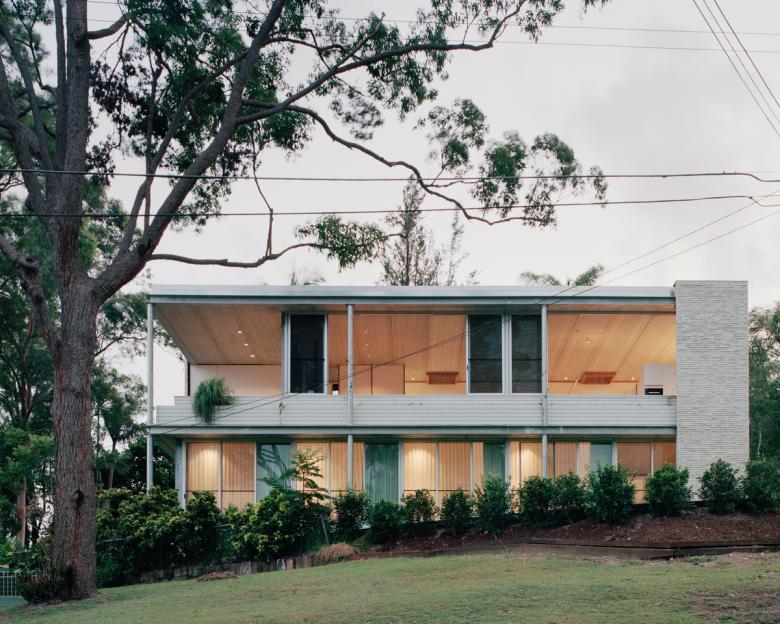 Using masonry was an early decision. The building is designed to be immensely heavy. The climate in this part of Australia is evolving: it is now hot/dry as much as it is hot/wet. A hybrid approach to cooling may now come into play, beyond the traditional reliance on intermittent breeze only. The house is designed to create radiant cooling using thermal mass via 30 nine-meter-long precast concrete floor and roof units, each weighing nearly four tons. Diurnal temperature difference recharges the thermal mass at night, ready to cool the occupants each day. Radiant cooling does not rely on air, so supplements traditional convection cooling and humidity control.