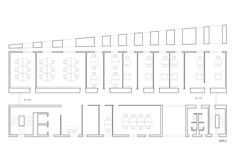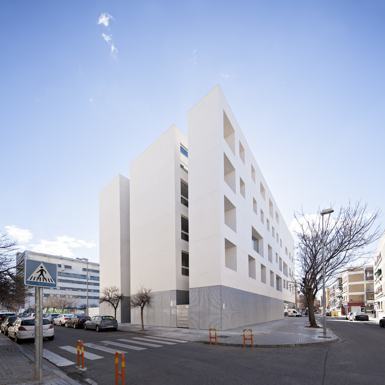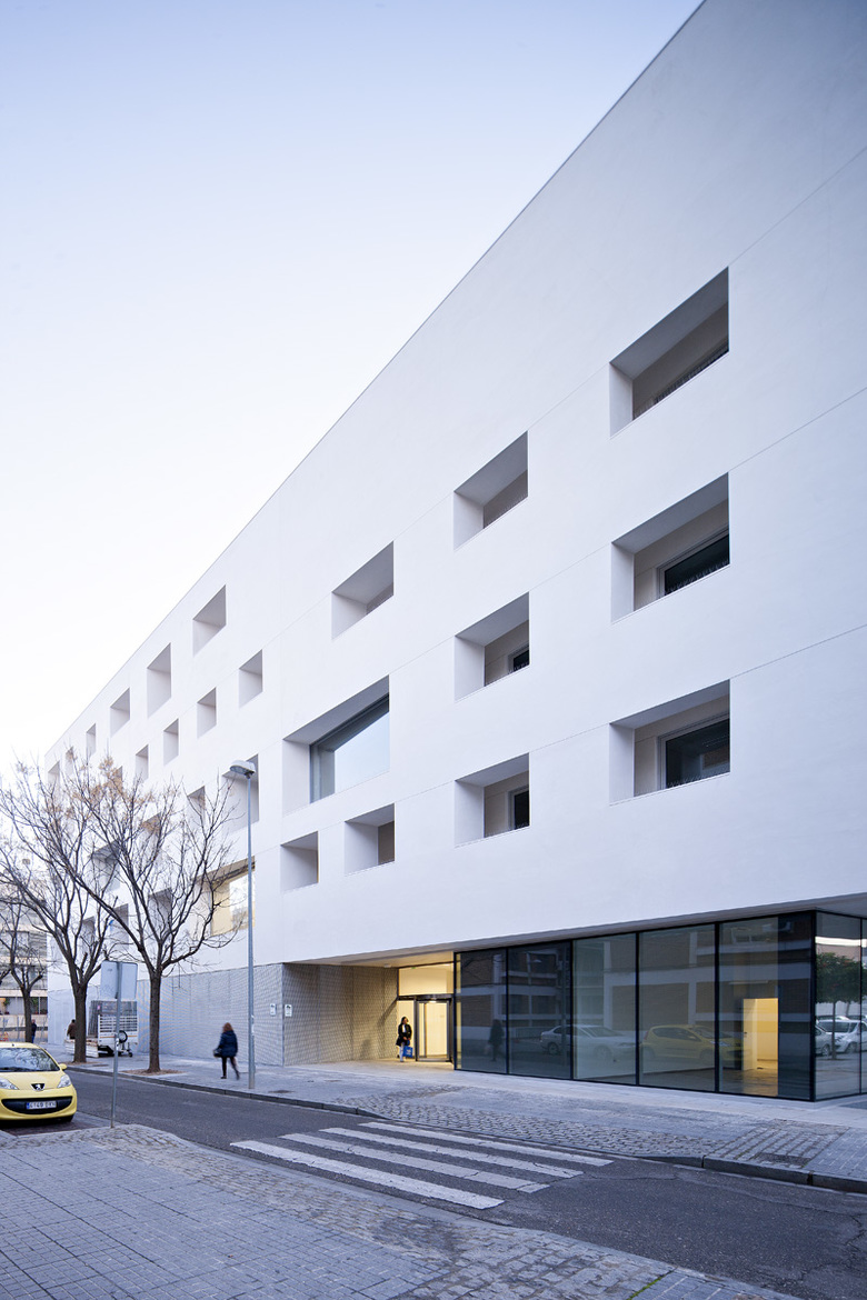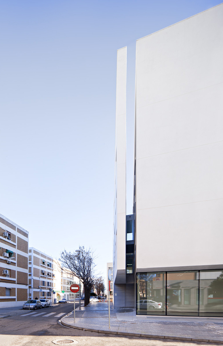 Located in a trapezoid-shape plot, as part of Renfe 2 Masterplan – one of the urban extensions of Cordoba, (Spain) – the building seems dramatically weightless, highlighted by the emphasis on the contrast of the façades: glass and concrete.