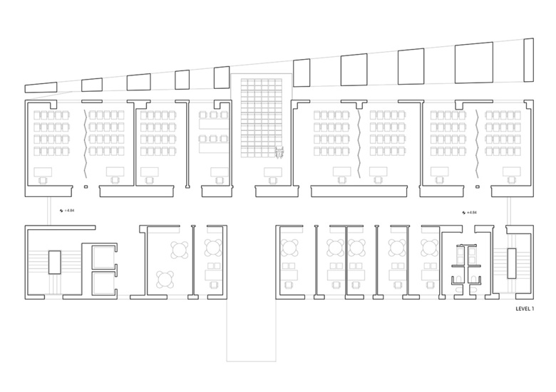 The new education center blends in with its surrounding urban backdrop. The north façade, double-skin, and east and west façades are covered in in situ micro-concrete with large windows that allow natural daylight to shine in. The south façade shows a translucent aluminium materiality with driven voids of light that embodies the building's aspirations in the city's fabric.