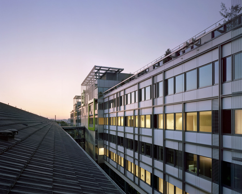 Constructed in an 8-shape, Eole is built around two large quiet gardens. The building’s shape combines rationality, fluidity, continuity and organic unity. The workspaces open into the Campus, the gardens and the site’s streets. The exteriors are arranged in sequences relatively to their orientation in accordance with the park and the patios. Woven stainless steel strands partially cover them. They filter natural light and constitute a passive sun blocker. At garden-level five terraces offer genuine gardens that anyone can enjoy. Hanging decks at the heart of the building create more green spaces with flexible lines.