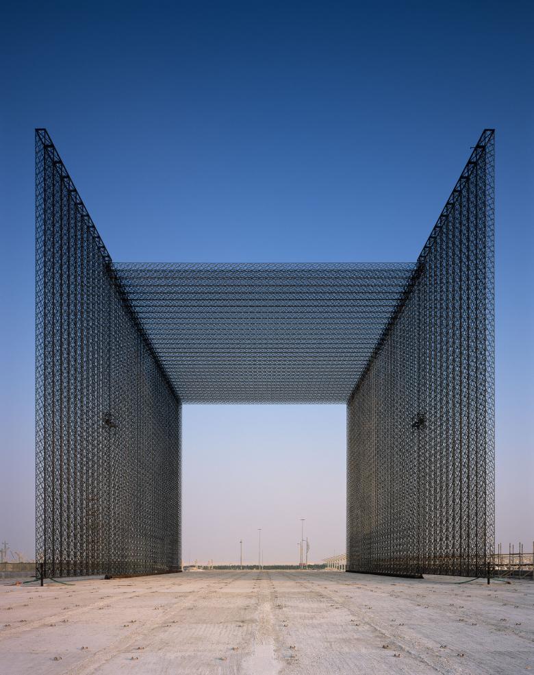 The portals are a futuristic exploration of the traditional mashrabiya, an elegant design element used across the region to control light and airflow.