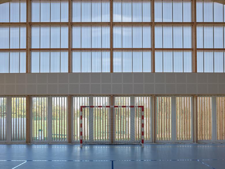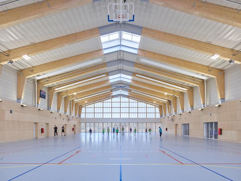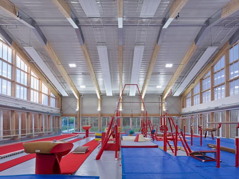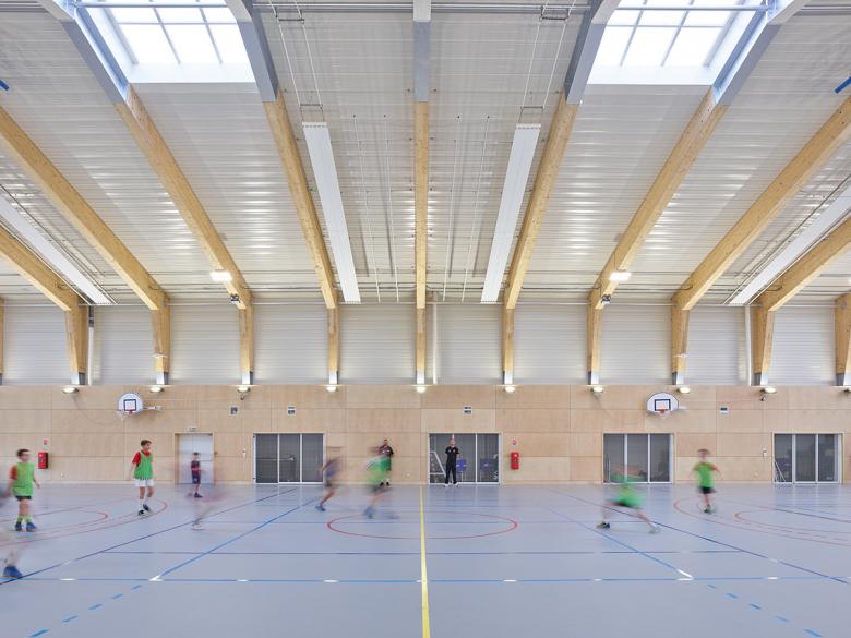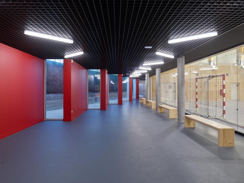 The extension includes a training room to practice team sports (basketball, volleyball and handball), a gymnasium and a "secondary welcome area" – a user-friendly space for the spectators.
