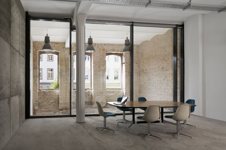 The addition of the new fourth and fifth floors demanded a careful response to the distinct structural and spatial properties of the old building parts. Thus, the design process for the two top floors can be best described as a cat lying down on a rugged stone wall, shifting and turning until it finds a suitably comfortable position for an afternoon nap.