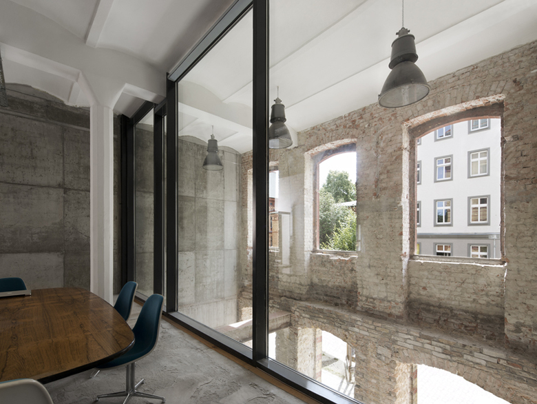 To highlight the beauty and integrity of the original structure, we aimed to recreate the pre-World War I facade as accurately as possible, as hardly any historical photos or original plans existed. The removal of the plaster cladding to reveal the original brick facade was a tricky undertaking due to strict German regulations regarding climate protection. The circulation and spatial logic were manipulated to satisfy the requirements of a 21st century start-up landscape. The offices of the internet company Soundcloud, for example, occupy formerly separate building parts and floor levels that were laced together with open internal staircases, creating a continuous spatial system connecting three floors of office program.