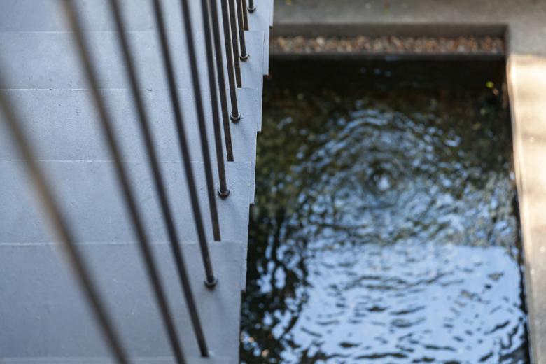 Steel stair with pond feature (Photo: Ketsiree Wongwan)