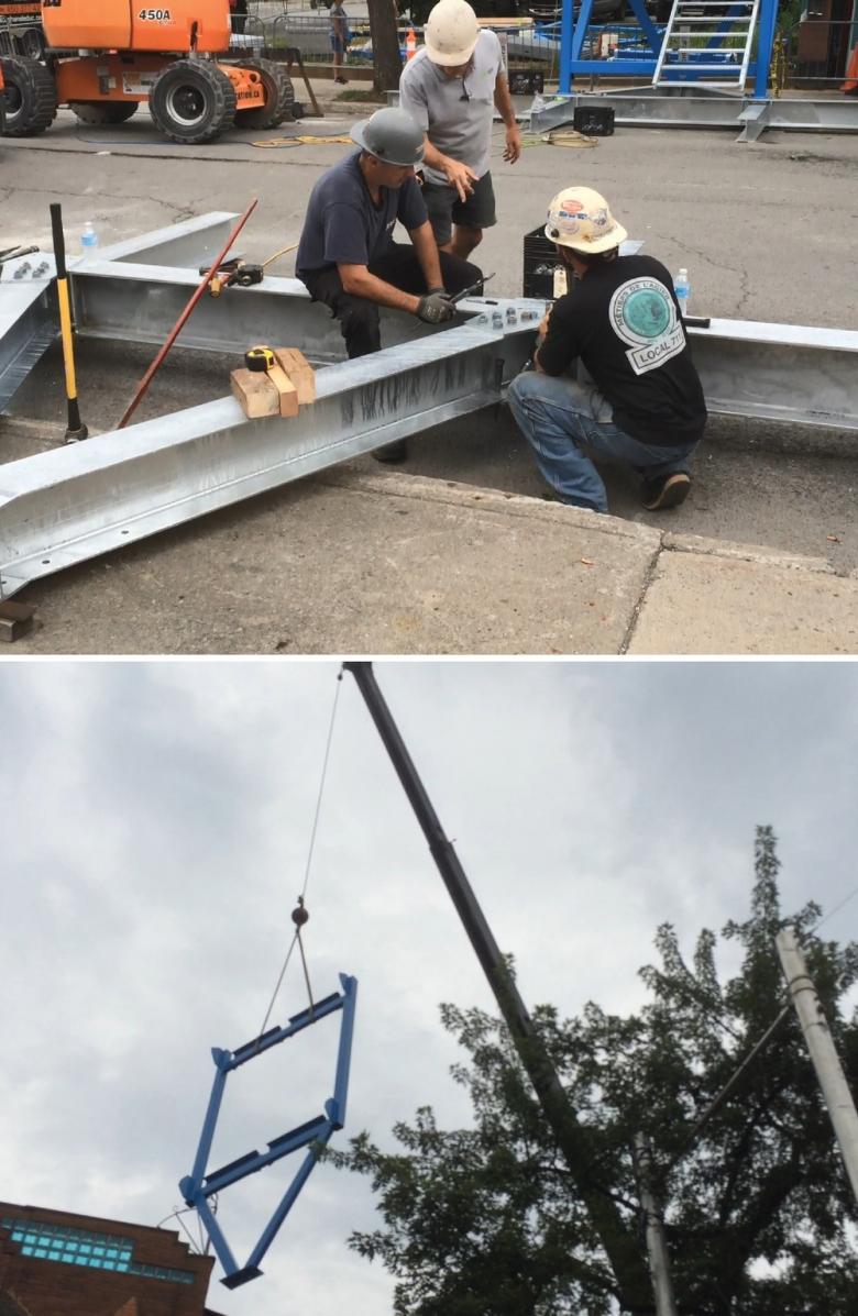 - The entire structure needed to be self-supporting. Fixing into the road or sidewalk was not permitted. Counterweights had to be used to resist wind and earthquake conditions.