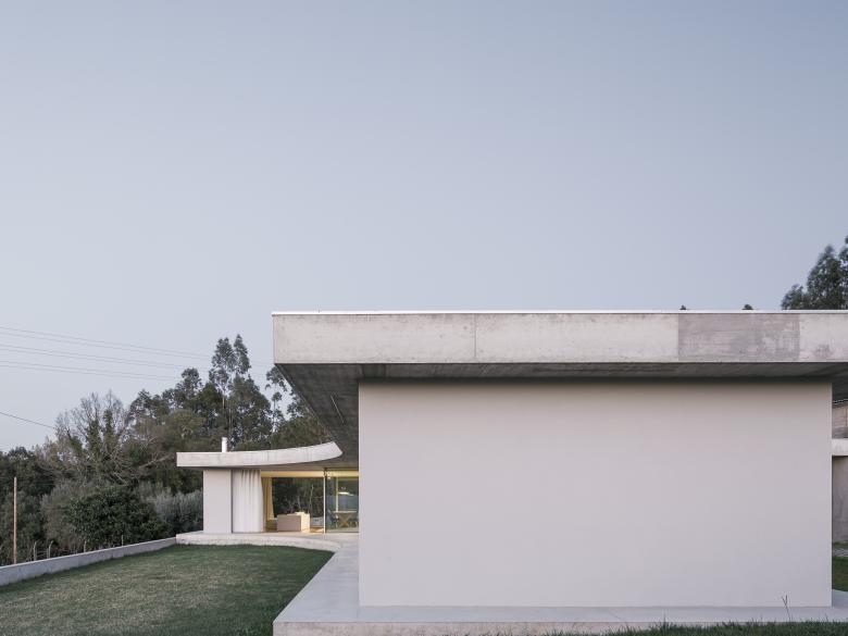 Two concrete slabs with organic shapes define the exterior outline, creating a piece with a sense of freedom and consequently, diversity in the creation of the interior areas, as well as permeability with the exterior. The areas are thus not limited by walls but span out — with nature serving as the only boundary.