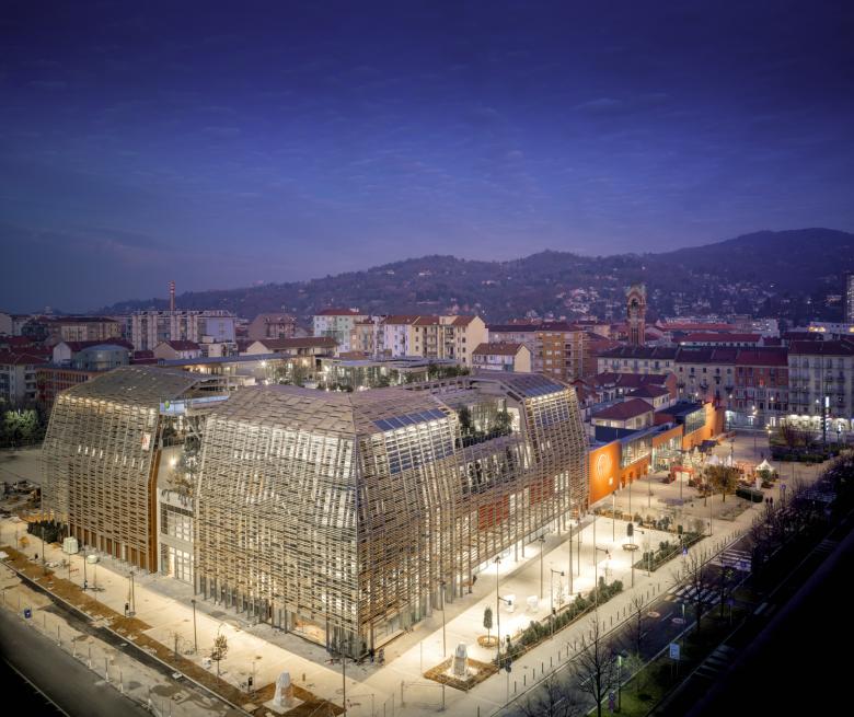 ACC Naturale Architettura Cristiana Catino and Negozio Blu Architetti (Ambrosini, Gatti, Grometto), former designers of the first Eataly, conceived a symbolic architecture to give shape to the strategic vision of Green Pea: a highly sustainable building, a manifesto built with new technologies and natural materials to convey, through architecture, the idea of respect for the environment and harmony with nature. Commissioned by Eataly Real Estate, Green Pea is the final step in the redevelopment of the former Carpano Lingotto industrial area, a pivotal project in the regeneration process going on in the southern area of Turin.