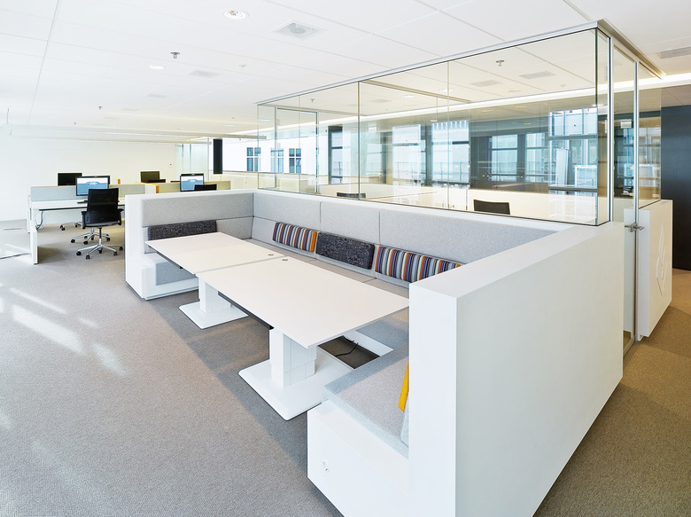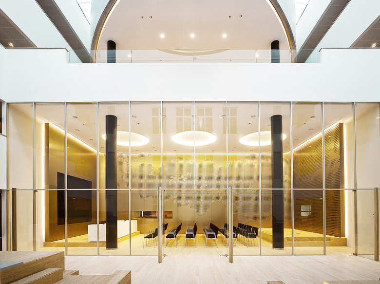 The previous 25 police forces in the Netherlands were merged into a single organization with ten regional units under one single Chief of Police on 1 January 2013. This new organization needed accommodation that was as flexible as possible, to give it room to develop. The core of the building containing specialized functions such as the press room, National Briefing Room, meeting and conference rooms and foyers surrounded by peripheral office space with team offices, individual offices and six hundred hot-desk work sites. Glass interior walls provide openness and daylight throughout the depth of the building, while a subtle print on the glass ensures privacy. The high degree of transparency mean that people can find and meet one another easily.