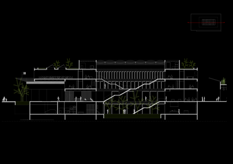 First there is the definition of a place, a public space of exchanges and convergence that we wanted to organize in continuity of the City Hall. It is about an open space which articulates the different components of the city. The project is thus also a relation to the ground, a continuum protected by a large canopy which shelters and welcomes.