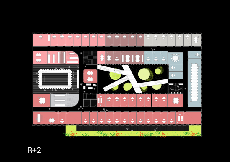 Thus we worked around the definition of an open space, an area displaying the vitality of the city, a place liven up by its protagonists and proposing services and equipment open to the people living in Bezons. It is a lively and attractive place where the dynamism of Bezons is offered to see for a close and civic administration.