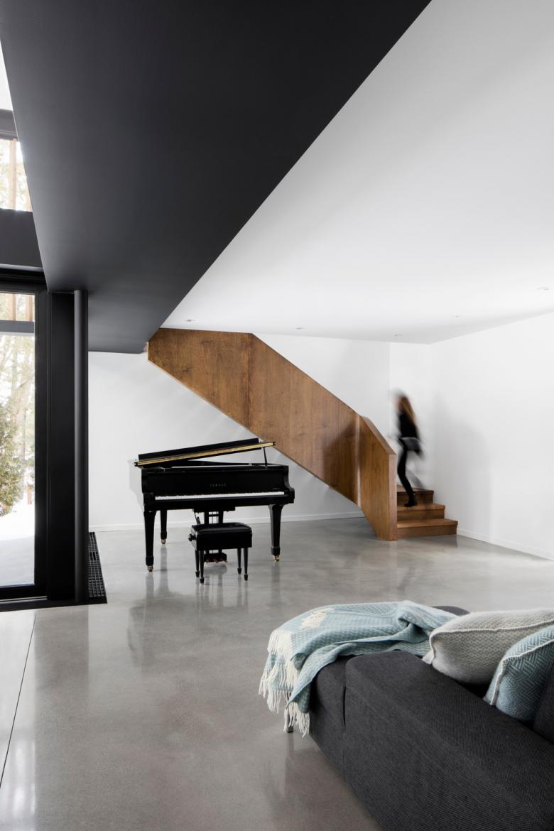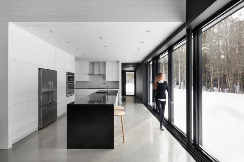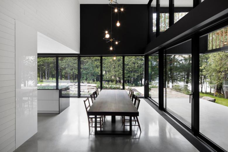 Located on the shores of Lake Memphremagog in the Eastern Townships, the House Lachance is a secondary residence designed for two clients who are native to the region, and currently oscillate between Montreal and Magog. Rapidly, the two clients who love music, nature and the land expressed their desire for a home with an open living area, where gastronomy and good dishes are prepared in direct relation to nature and the lake. At the heart of the space thus settle the three strong and unifying elements of the project: the kitchen, the dining table and the piano.