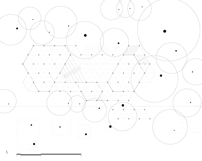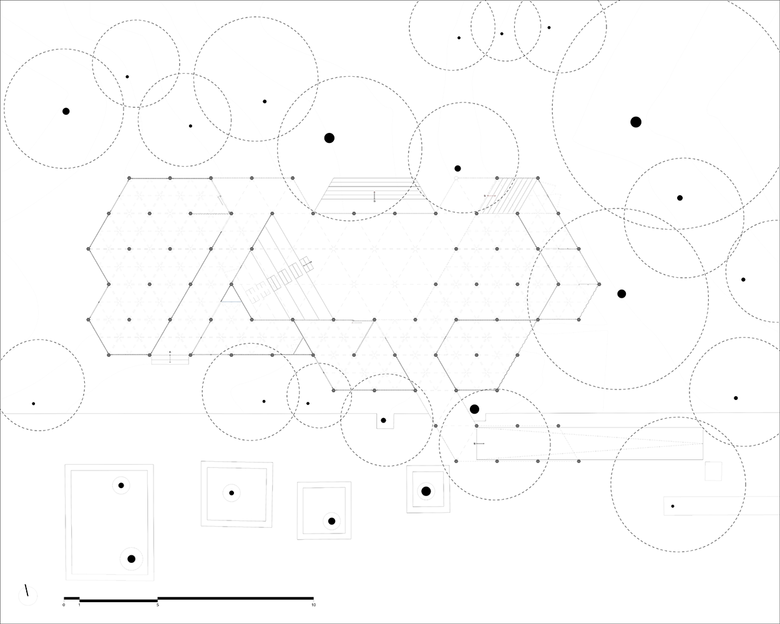 Dellekamp Arquitectos began to work on the project without a defined program and site, so a modular system was designed based on a triangular grid that allows adaptation to different locations and changing needs of the program, which allowed transformations during the design process.