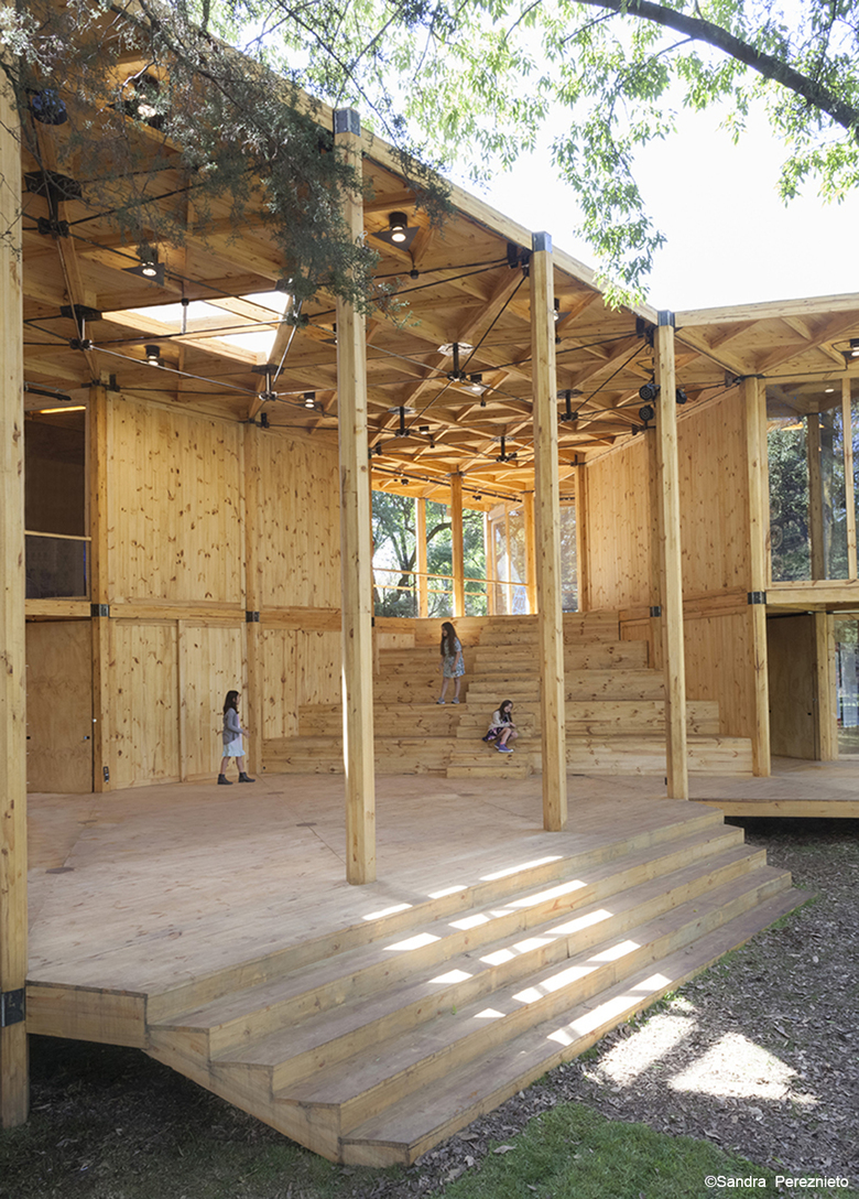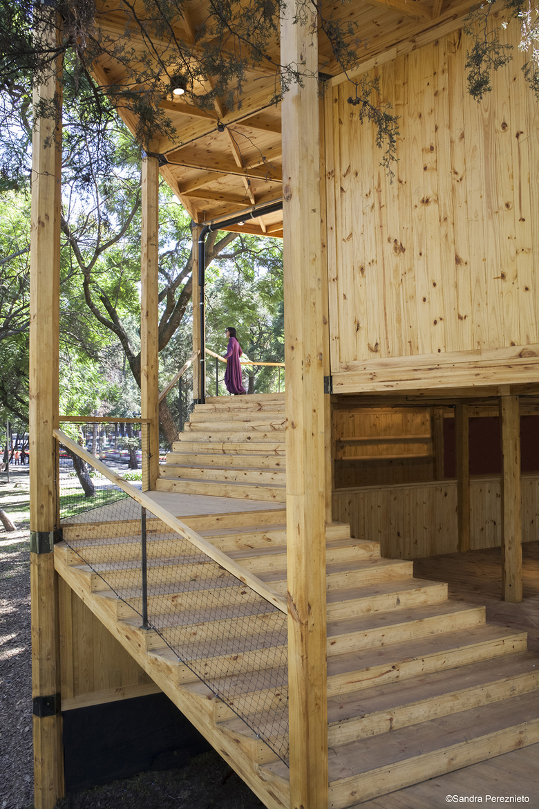 In addition to the use of wood as a renewable and sustainable material construction, the pavilion offers an alternative to water management.