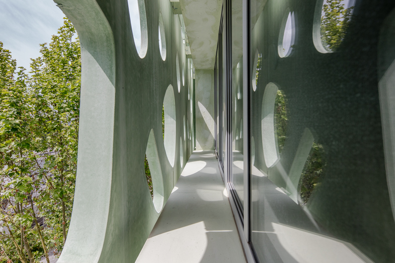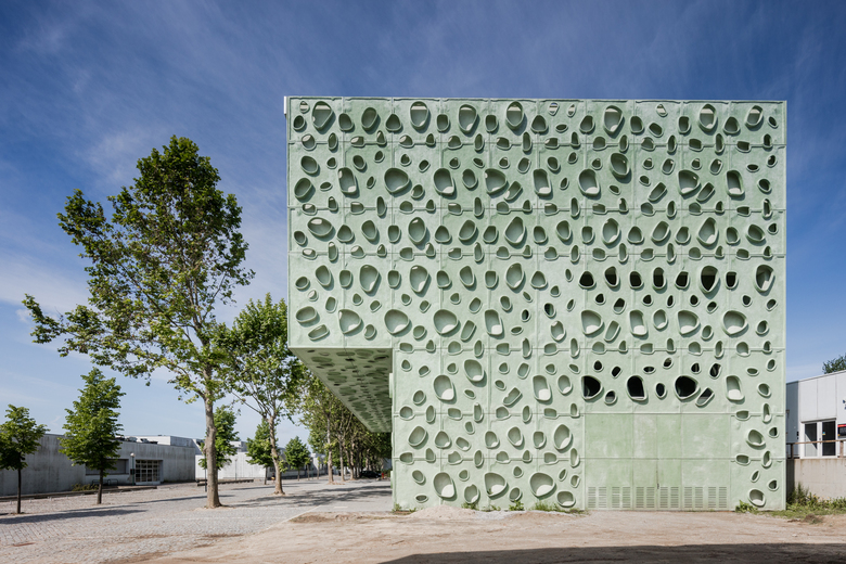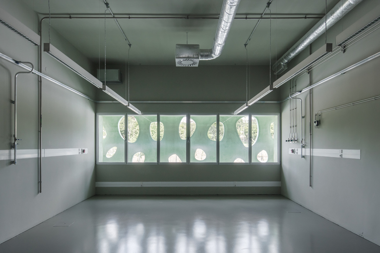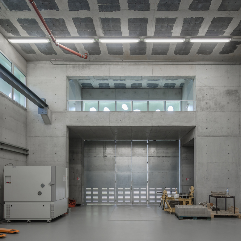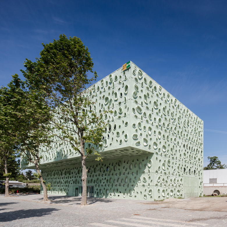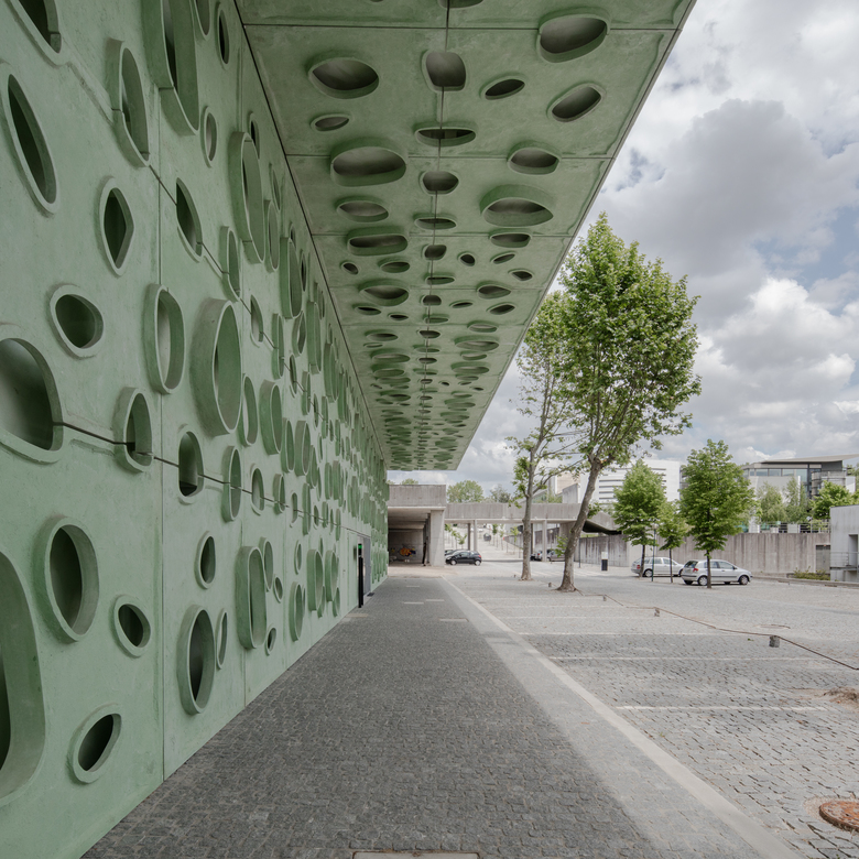 The search for future technology themes was the genesis of the selected image for the building. The facade skin happened through an architectural reinterpretation, it retracts the symbolic power of the ERI purpose. We used as reference the titanium nanotubes. Associated with recent discoveries, the titanium nanotubes have, among others, capacities for reuse and cheap production, becoming, this way, an inspiration for an architecture that seeks sustainability as an ideal. Nowadays, at the offices of UM (Minho University), researching processes are occurring in what concerns to materials development, one possible example is what’s happening in the civil engineering laboratory. In order to develop common synergies, we propose the skin of the building in prefabricated elements of a cementitious matrix material. This material reinforced with micro-fibers, has no conventional reinforcement, which could cause corrosion problems, among other features, is a very ductile material, plastic, fluid, self-compatible and allows to control the crack and therefore doesn’t crack. This skin allows the inclusion of pigmentation/oxides doesn’t need constant maintenance and lasts longer than common materials. To finish, it also allows a wide range of the architectural freedom.