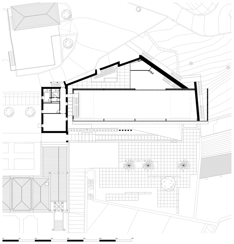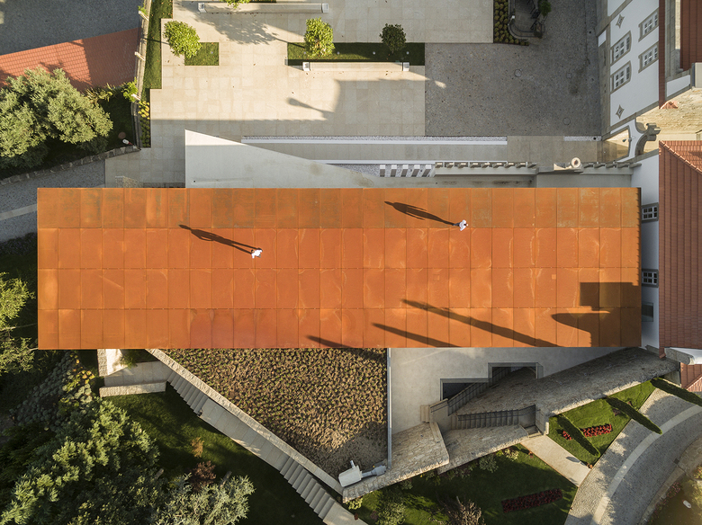 The preservation of this patrimony inserted in the local cultural landscape was possible due to a demanding recovery criteria that integrated the new volume. Therefore, this arises embraced by the confining elements of the old structure, respecting the alignments, promoting and reinforcing the pedestrian axis that runs through the center of the palace and ending at a corbel protruding volume that welcomes the visitors of Igreja Velha Palace.