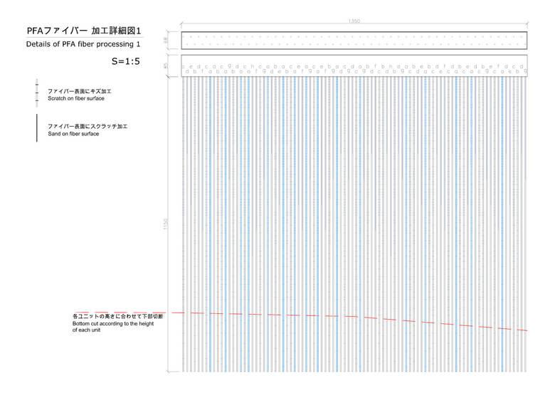 • 90 pieces of hung lighting fibers, ranging between 1.03 to 1.15 meter long