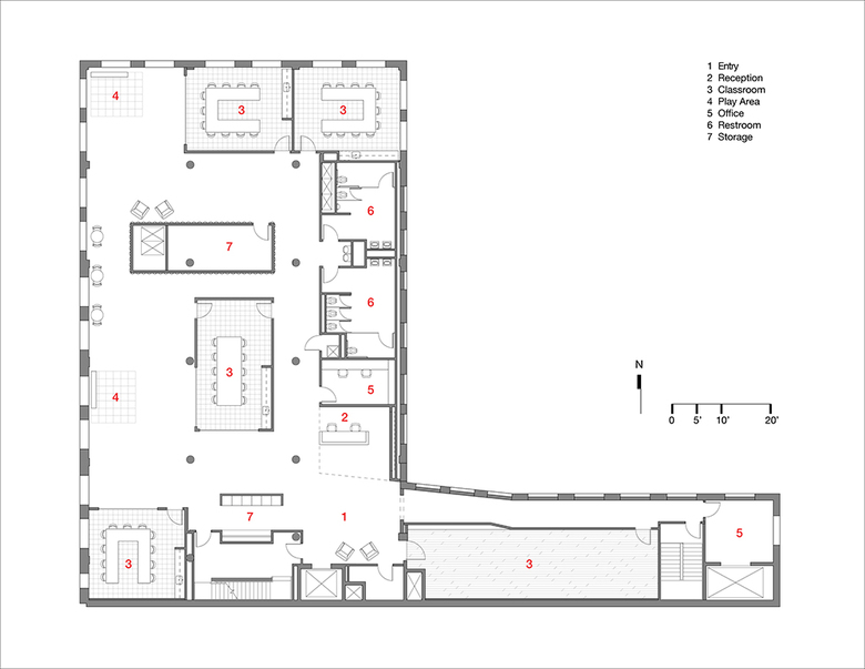 The owners sought to create spaces that facilitated their teaching mission of providing children with an exciting, hands-on curriculum.  Starting with nothing but a 7,900 sf loft, renowned architects Andy Tinucci and David Woodhouse of Woodhouse Tinucci Architects brought this vision to life, developing a plan that made the classrooms and architecture active participants in the learning process and in turn creating a positive environment to enhance learning opportunities.