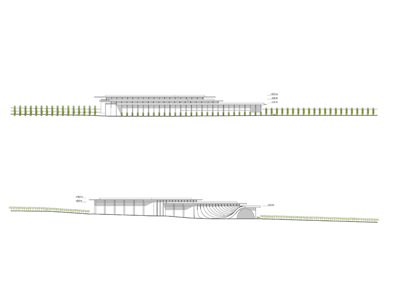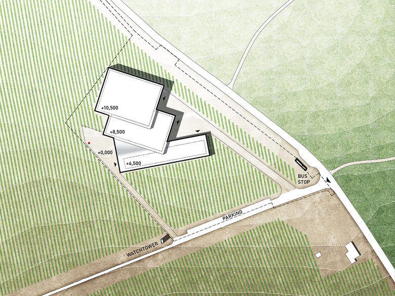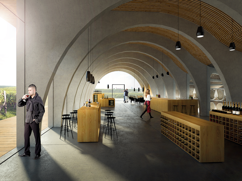 The structural scheme is based on the width of the row of grapevines and runs through the whole house. In the representative wine tasting room, the vineyard and an archetypal arched room, referring to the wine cellars in that region, intersect orthogonally. Wine making is concentrated in two horizontal buildings; the winery thus gives the impression of being lightweight in relation to the countryside.