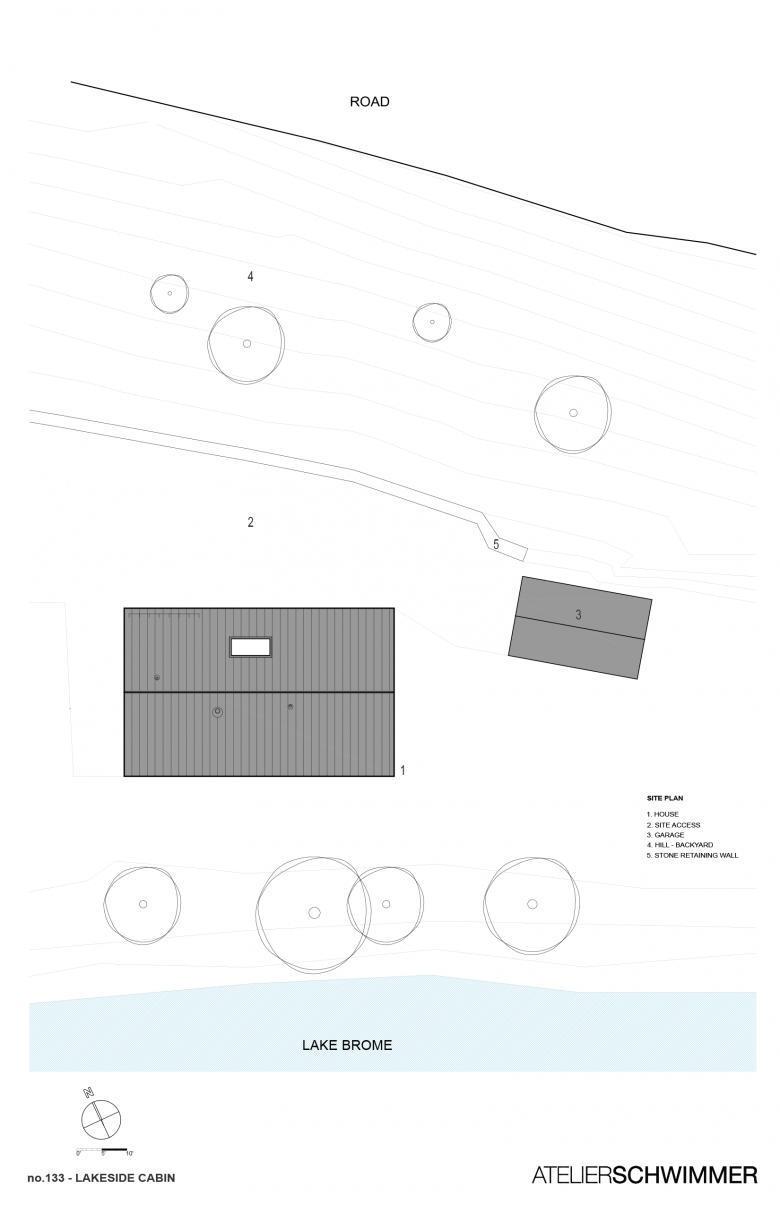 Two brothers have embraced outdoor activities as part of their fast-paced city life. A new building on the banks of Lake Brome, will act as a symbol of and a tool for the fulfillment of this commitment - a building in which to share time with friends. Bisected by a vertical atrium that opens on to the lake, the essence of the design is a concrete floor with a fireplace at its center that creates a place to mingle.