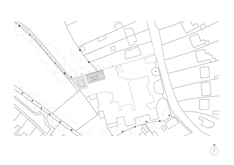 The timber frame construction on the Little Hall is clad on two facades with a white corrugated polycarbonate from Rockwell and cement board cladding from James Hardie on the remaining two facades.