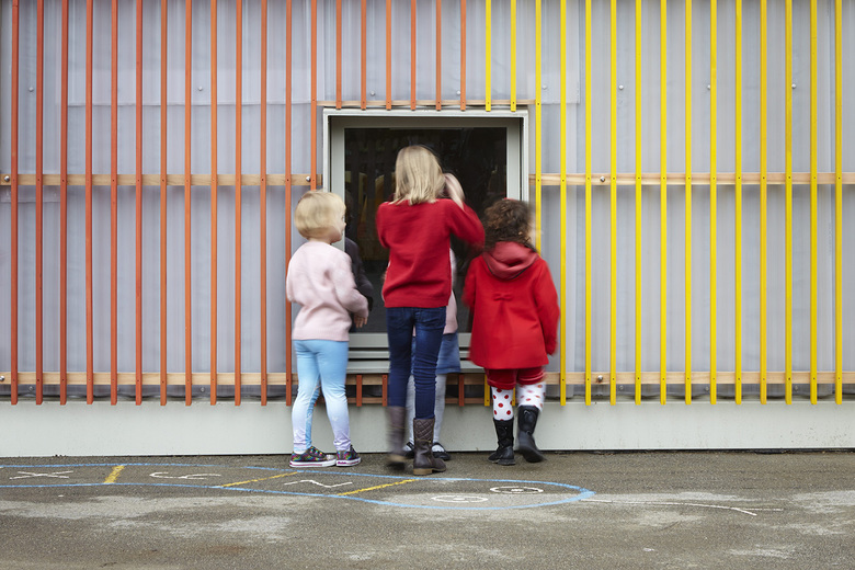 The £158,000 colourful new building is called Little Hall and will also be rented out as a facility for the local community, bringing in much-needed revenue for the school. It has playful features such as a small one-to-one teaching space and two WC’s painted to depict a fox’s den, a bush with berries and lastly Mr Fox’s tail. A large plywood bookcase runs the full length of the front of the building with window seats for reading.