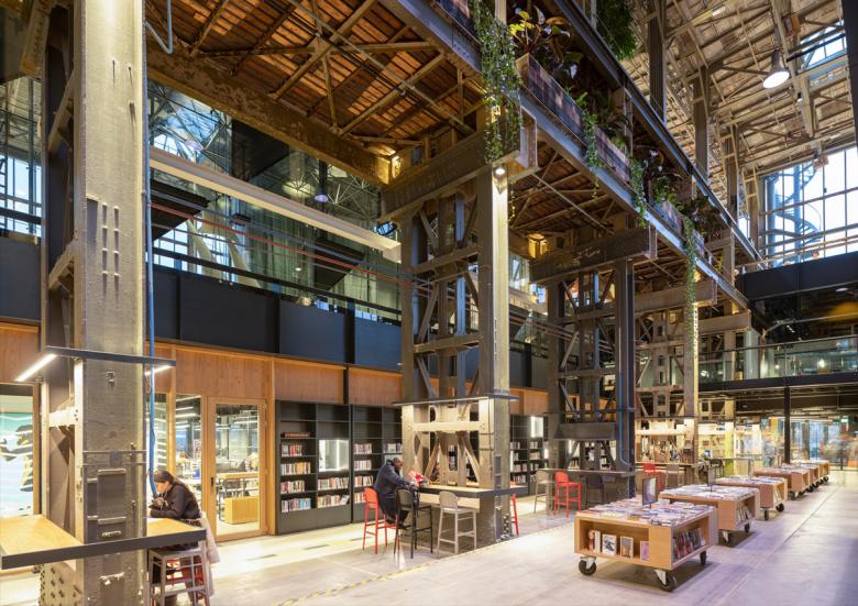 The LocHal is a new, world-class urban living room for Tilburg in an iconic former locomotive shed of the Dutch National Railways. It houses the Midden-Brabant Library, the cultural institutions Kunstloc and Brabant C and the co-working spaces of Seats2meet.