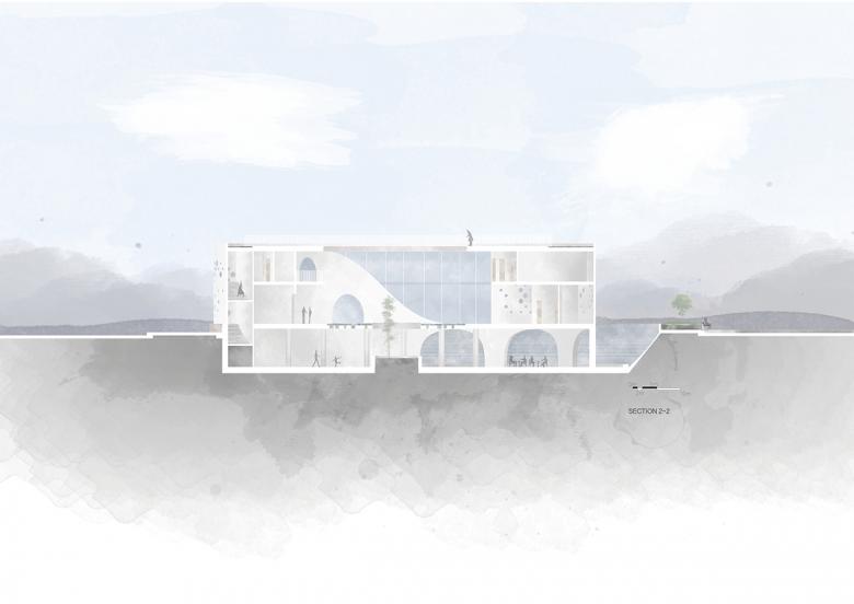 From a vibrant landscape angle, we designed the cultural center in a vibrant dynamic texture; it is the prototype of the circular building. Through the formation of circles, a multi-level spatial space is formed to achieve a coherent exterior and interior experience. This is an open space for people come in and out, the arched wall and exquisite skylight, giving a light and transparent feeling.