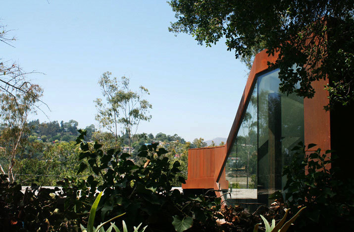 The steel skin and its associated plaster interior liner form a spatial manifold that envelops the residence and provides autonomy between program as required, while expanding the compact interior living spaces into the landscape at every opportunity. This expansion effectively doubles the useable living space of the residence.