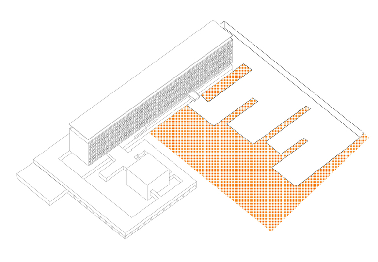 The New Building will harvest the rainwater on both the rooftop and through basement ceilings. The rainwater will be used to irrigate the outdoor and indoor gardens.