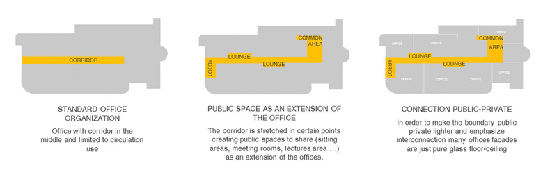 But in this case, very quickly the focus moves to the outside. How should this building interact with its surroundings? Can this building stand out in a sea of sameness? And can the façade contribute to its interior environment so it’s not just a cosmetic intervention?