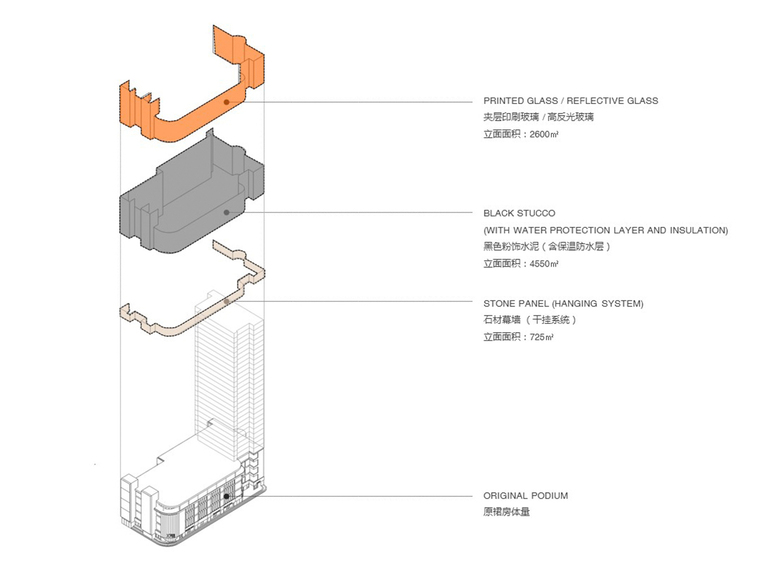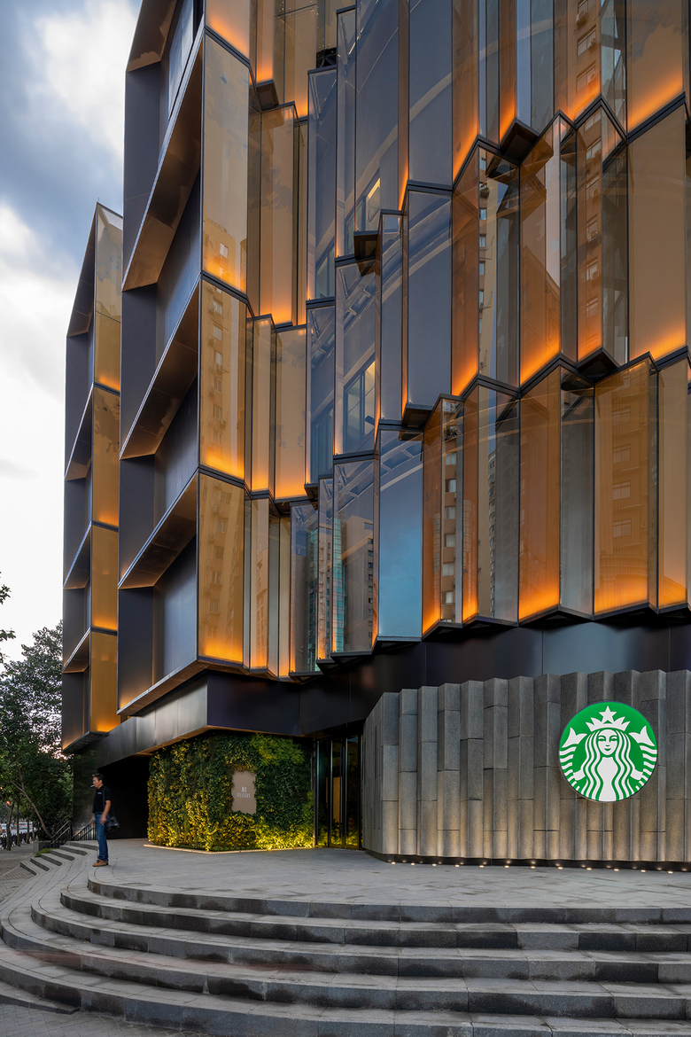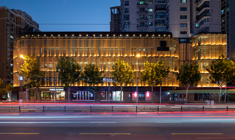 A bonus is the play of glass and trees through reflection. We printed the typical Shanghai platane leaves on the south-facing glass, creating a blend of trees, glass and sky multiplied through this faceted façade. All coming together as a façade that moves as you move.