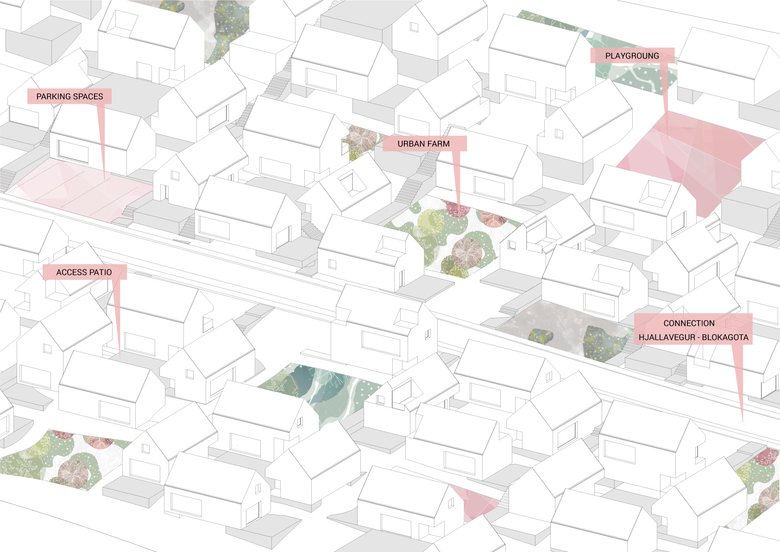 We are interested in having a dense and porous urbanization where the common areas become a continuous urban landscape with playgrounds, gardens and urban farms.