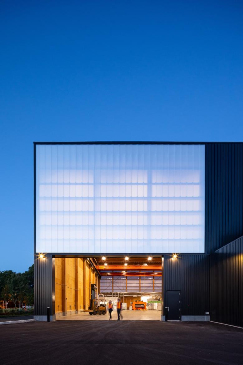 The AWP program required an expansive space to allow for the flexibility to test and adapt to technologies as they emerged. The building structure is a simple and elegant glulam and MPP system that works together to achieve the long span required. The lab space is broken into two bays: