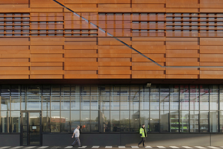 An old household rubbish tip in the middle of an industrial zone swept by dynamic east-west flows (trains, cars, barges, river, wind) defines the vibrant setting of the technical centre for the Public Waste Collection Service and its Support Department.