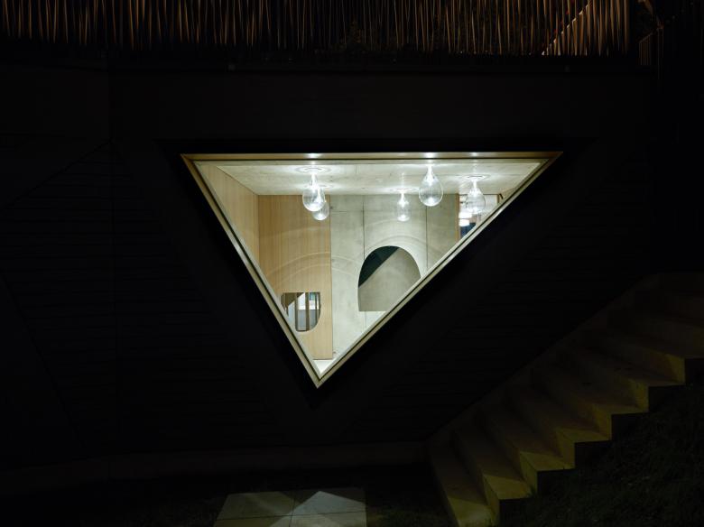 The oak façades are composed of oblique blades reinterpreting the play of trees structuring the site. The roof, accessible from the outside, hosts thirty urban vegetable gardens and a fountain. It is conceived as a real meeting place nestled in the middle of the treetops.