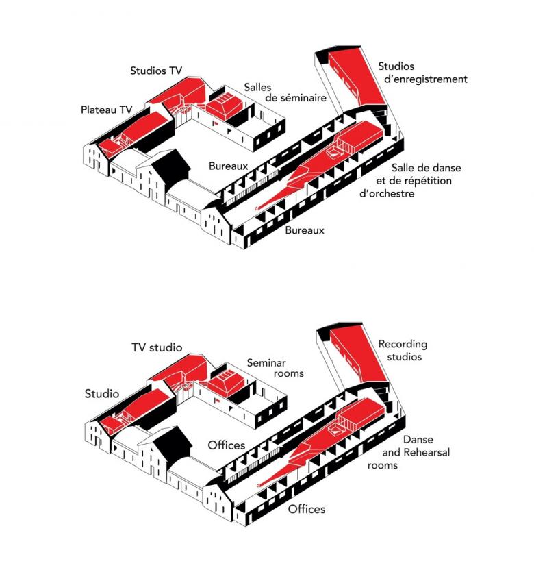 Hérault Arnod’s competition-winning project proposes a program based on music and sound, in memory of the massive noise produced by this industrial site when in production, now fallen silent in its abandonment.