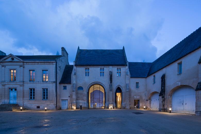 This recently delivered phase includes the restoration of the Bayeux Gate. A 12th-century carriage gate and the abbey’s western entrance, it is now the public’s point of access and reception. Formerly an open-air passageway, the interior space of the Bayeux Gate has been enclosed. Despite this changed vocation, the medieval construction remains intact in its new state. The openings have been filled with stained glass circled by “tunnel-frameworks” made of rusted steel. The furnishings, reception desk and benches, were all designed by the architects.