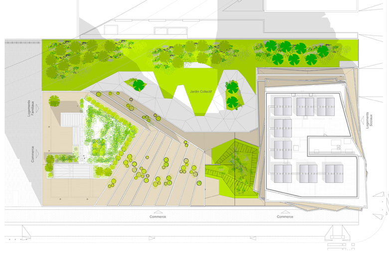 Functioning as one single building and offering social housing and home ownership opportunities, the project links the strict rigidity of the Avenue de France, the railway landscape, the entrance to the Ivry suburb and finally the transition from a linear city to a vertical one.