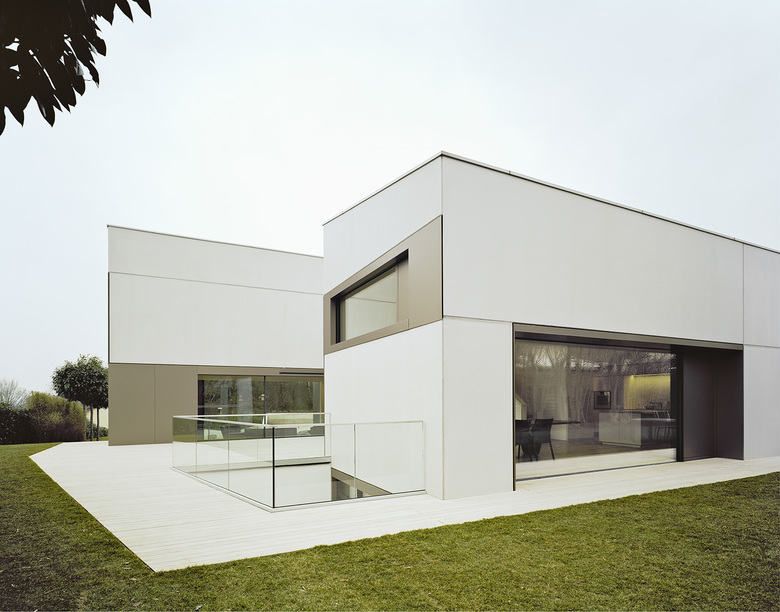 Stuttgart's Steimle Architekten recently completed a three-story urban villa with a small courtyard, a deck atop the garage, and a lap pool. The architects sent us some photographs and drawings of the S3 City Villa.