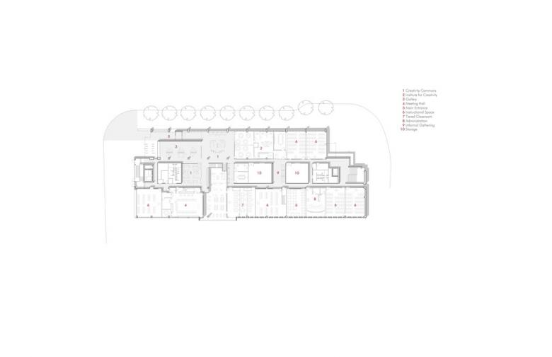 The sequence of discovery begins in the Creativity Commons, a double-height atrium around which series’ of learning spaces gravitate—research, training and leadership centres, maker spaces, meeting rooms, technology-enabled classrooms, food services, a gallery, and bookstore. A feature scissor stair, escalating 5 storeys through the atrium, connects these spaces visually and physically with the Commons and projects their energy and animation upwards. As users ascend and circulate, their experience of the building changes. Openings have been staggered and site lines curated to provide natural light and views across the floorplate, down into the atrium and or out to the new quad.