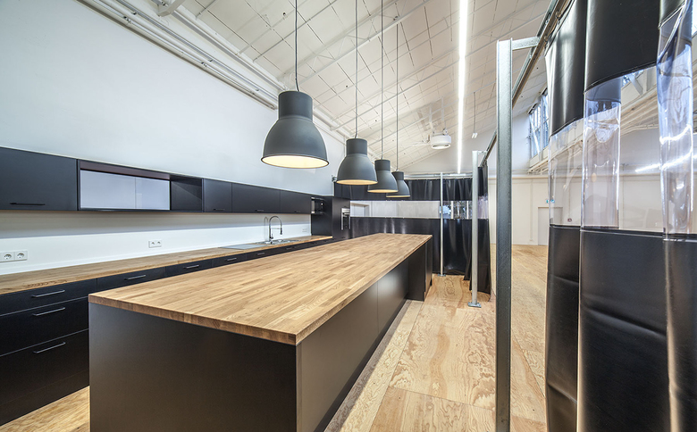 The project will preserve the authentic and rough character of the space, revealing the unique textures and stories expressed in the structure and materials such as the exposed steel trusses and worn concrete floor. Within this industrial framework, we will introduce elements like racks, shelves and boxes for displaying the clothes and shoes.