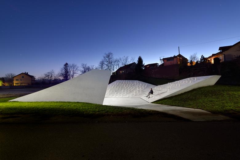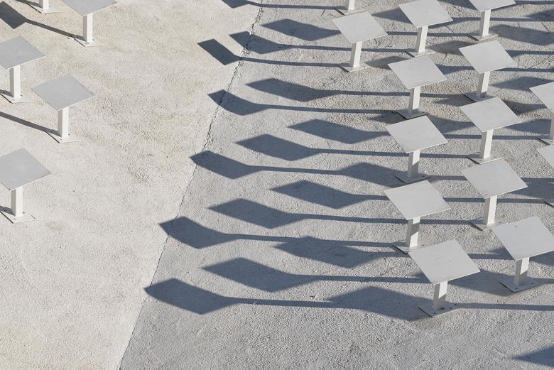 The entire structure is made of a uniform material - white concrete. The combination of simple materiality and emphasized volumes creates an attractive spatial element, its appearance sufficiently bold to drown the heterogeneous structure of the surroundings and mark the significance of the area.