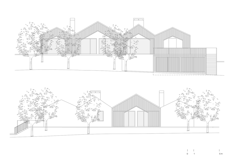 The buildings, formally developed from the combined volumes of evoking the traditional image of a house, seek identification with the characteristics of the traditional regional architecture, in the sobriety of lines and materials.