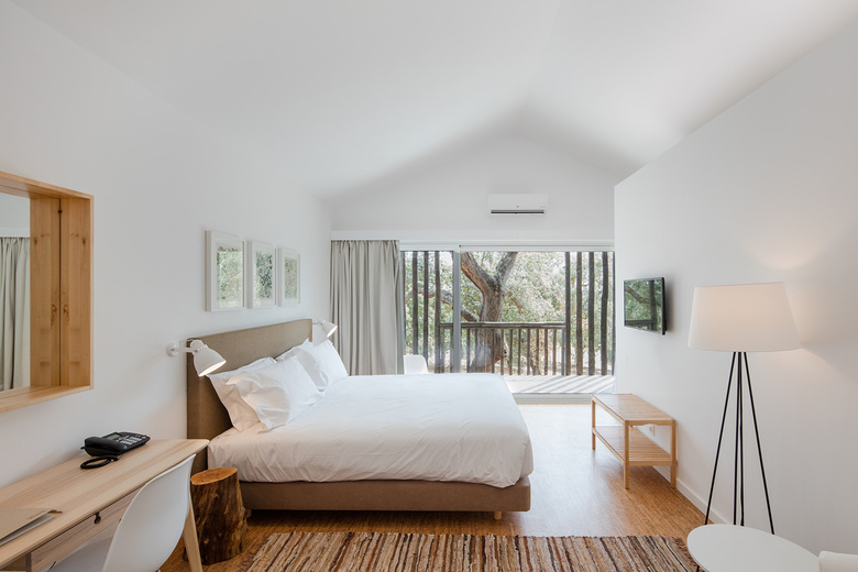 Maintaining the natural dynamic of this site is the cornerstone of this intervention which in exterior space lies in the use of natural and environmentally friendly materials. The access path to the Hotel is made of grit for a better landscape integration and to preserve the soil permeability.