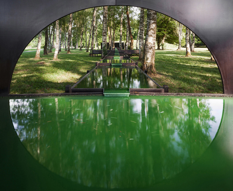 The fountain constitutes a hybrid, fusing the production basins of the intense blue-green algae with contemplative Italian gardens of the 16th century. More specifically, the form and dimensions of the fountain quotes the water cascades of the Villa Aldobrandini built in 1550 in Frascati, 20 km southeast of Rome.