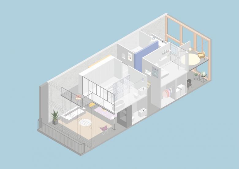 A prefabricated concrete base structure (support) provides a framework of three- to six-metre-high and wide modules that can be flexibly combined into housing blocks, slabs, highrises or townhouses. Owners/residents then add their interior (infill) into these raw volumes, with complete freedom to customise/tailor and evolve it to suit their unique lifestyles and requirements. It becomes more affordable when owners can design and build the interiors themselves and invest gradually to grow into their space. The flexible and modular framework easily adapts to changing cycles of use to facilitate a circular way of building.