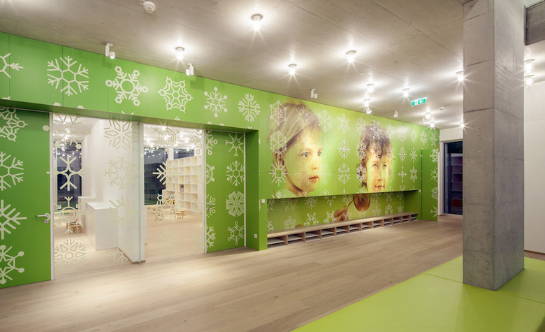 Swarovski’s first company daycare center for children has been completed in cooperation with Regina Dahmen Ingenhoven. The building is located in Wattens, Austria, the main location of the traditional company and joins it’s premises in direct extension of the already existing Veil designed in 2008.