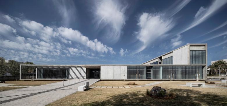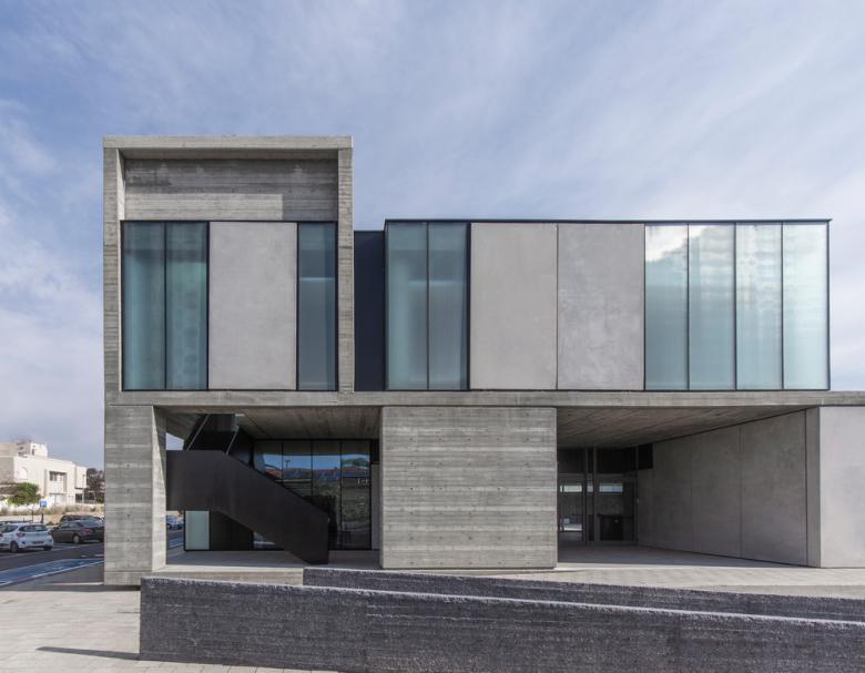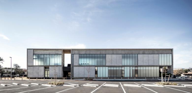 The uniqueness of the design lies in the coherence of a precise geometric module that is strictly enforced throughout: concrete (on-site casts & precast units), textured glass, and metal flow seamlessly from exterior to interior surfaces. Cutting-edge sealing techniques were used to protect the building from the rain while maintaining its flat roof silhouette and tight proportions.